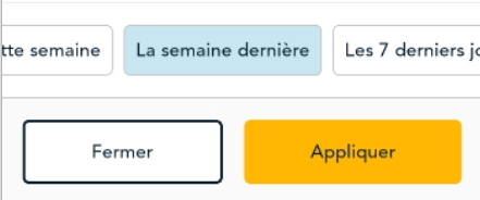 - L’application affiche les options disponibles. Au bas de l’écran, choisissez une des plages de dates prédéfinies, telles que Hier, Dernière semaine, Dernier 7 jours, Ce mois-ci, Dernier mois, et ainsi de suite.