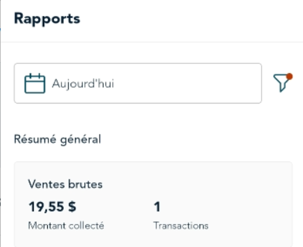 - Le rapport s'affiche et montre les transactions d’aujourd’hui par défaut.