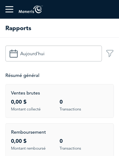 Ce rapport est disponible dans l’application Go Détail qui fonctionne sur votre terminal Moneris Go. Il comprend toutes les transactions traitées par Go Retail, que vous ayez traité la transaction sur l’application Web ou sur l’application de terminal. Le rapport montre :