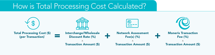 - Interchange rates: These are bank fees. It’s the amount that every card processor, like Moneris, is required to pay to credit card issuers and/or financial institutions for each credit or debit card transaction processed by its merchants