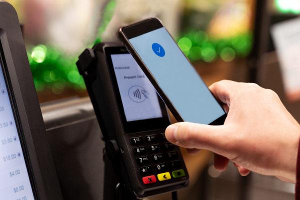 • Un client tire sa carte de paiement de sa poche plutôt que de son portefeuille.