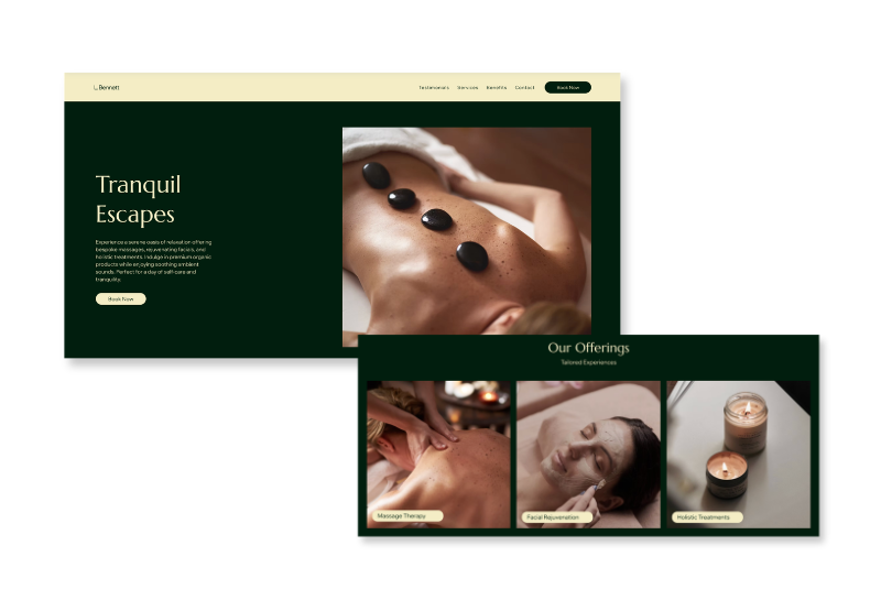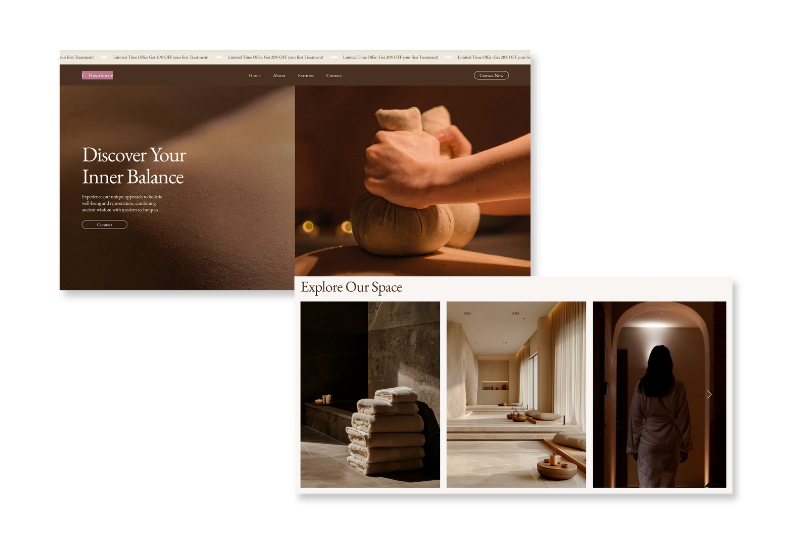 Commencez par choisir une plateforme qui propose des modèles prêts à l’emploi spécialement conçus pour les spas, les studios de mieux-être et les centres de traitement. À partir de là, vous pouvez personnaliser la mise en page avec votre image de marque, les descriptions de vos services, vos tarifs et des images apaisantes qui sont le reflet de votre environnement.