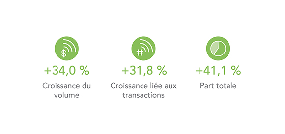Terre-Neuve, la Nouvelle-Écosse et le Nouveau-Brunswick ont enregistré la plus importante croissance en volume de transactions sans contact avec des augmentations respectives de 42,7 %, de 41,3 % et de 39,4 %.