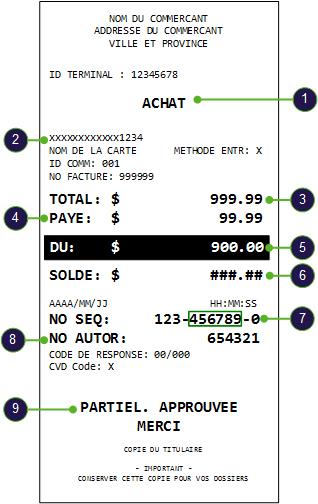 Numéro de séquence. Nota : Les six chiffres encadrés servent à traiter les remboursements et les annulations. |