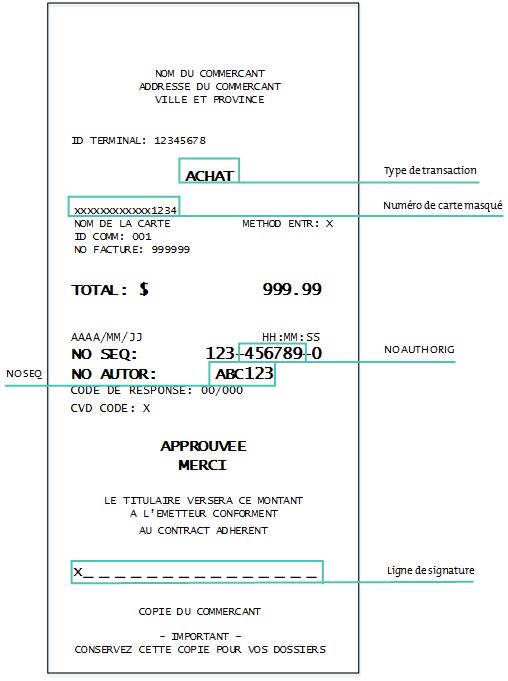 Si le reçu du client comporte une ligne de signature, vous (c.-à-d., le commerçant) devez signer le reçu.