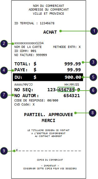 Ce reçu s'imprime après l'exécution d'une approbation d'achat partielle.
