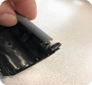 The printer paper roller may have popped out of place. Press gently but firmly on the loose end of the printer roller to pop it back into place. Then close the printer lid. 1. 2. |