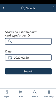 Tap Search to enter specific search terms. For instructions on using Scan or using Search, refer to Methods of finding a transaction.