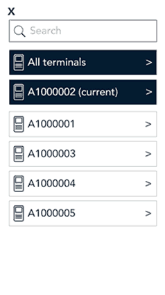 - On the additional options menu, tap Terminal to display a list of your terminals.