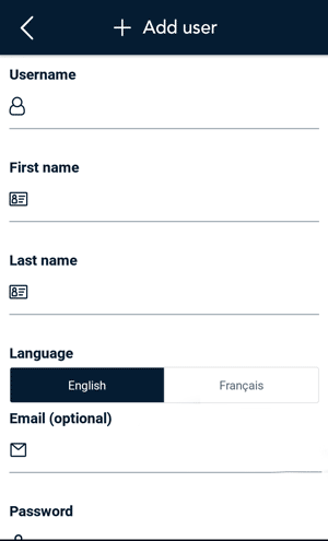 - On the New user screen, tap each field and fill in the required information: