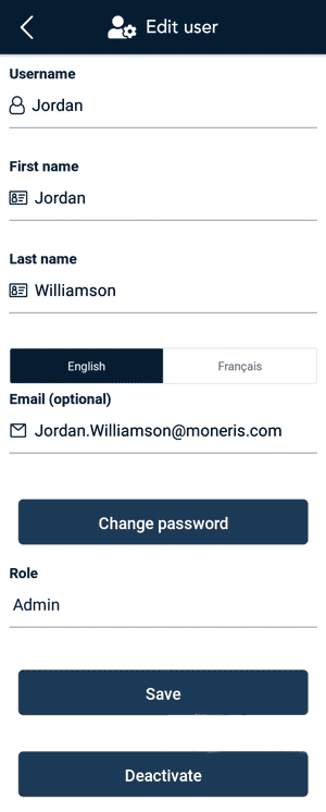 - To disable the user profile so they can no longer sign in, tap Deactivate.