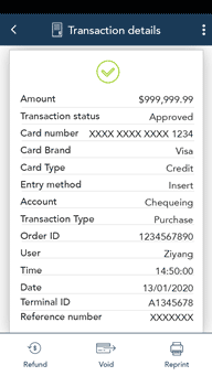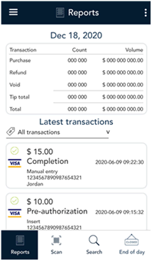 You can also tap Scan to scan the QR code from a receipt, or tap Search to look for the transaction to be refunded. For instructions, refer to Methods of finding a transaction. |