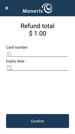 Note: The order of these initial steps is flexible. You can enter the refund amount first, or you can choose the method of card entry first. Both will work. |