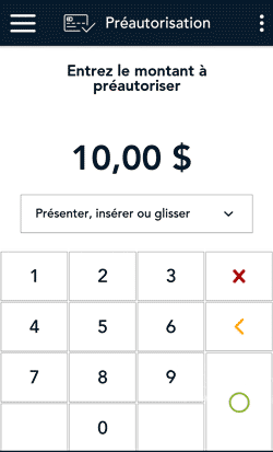 - Au moyen du clavier numérique à l’écran, entrez le montant que vous souhaitez préautoriser puis appuyez sur la touche OK ◯ .