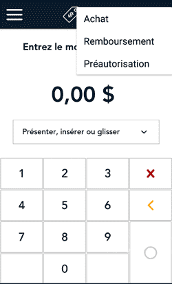 - Commencez à l’écran Achat. Il s’agit de l’écran par défaut du terminal.