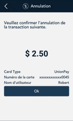 - L’application vous invite à confirmer que vous souhaitez continuer la transaction d’annulation.