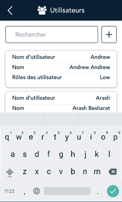 - Consulter et modifier les renseignements de l’utilisateur. L’application affiche tous les utilisateurs dans un format compact. Appuyez sur un utilisateur précis pour consulter ses renseignements complets,