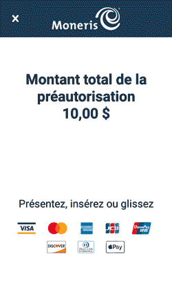 - L’écran de la préautorisation totale s’affiche et demande au client de « Présenter, insérer ou glisser » sa carte.