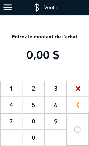 13. L’écran par défaut, Vente, s’affiche. L’application peut alors traiter la prochaine transaction.  |