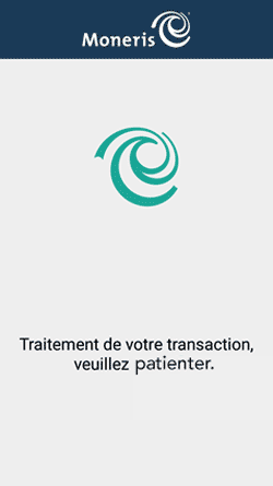 8. Le message « Traitement de votre transaction, veuillez patienter » s’affiche. Si le client insère une carte à puce, le message « Ne retirez pas votre carte » s’affiche également.  |