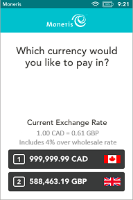 Once you sign up for DCC, Moneris will activate the feature on your merchant account.