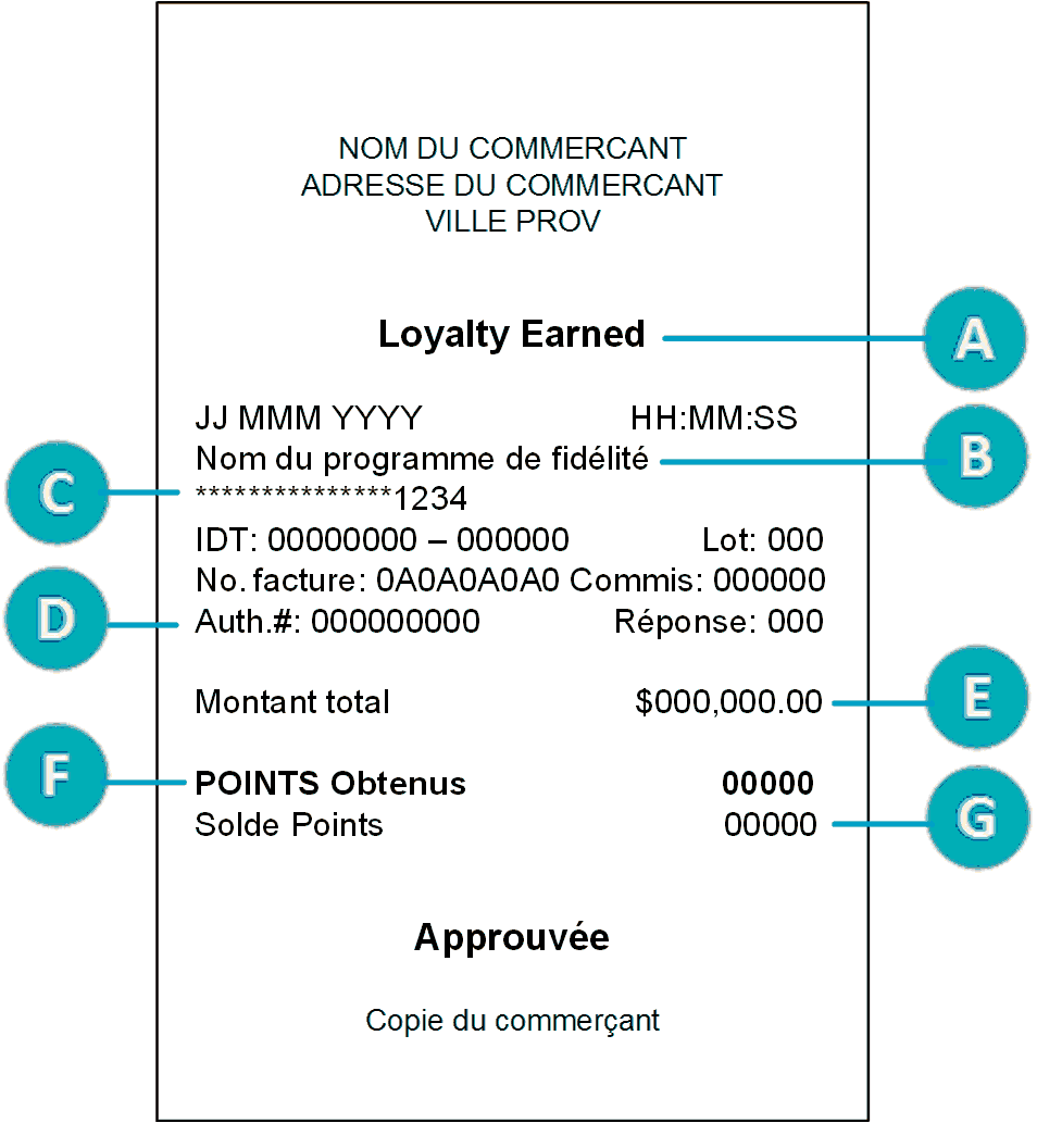Un numéro d’autorisation s’affiche sur la copie du reçu du client et celle du commerçant pour chaque transaction par carte de fidélité. Vous pourriez être invité à saisir ce numéro lorsque vous traitez des remboursements et des annulations par carte de fidélité ainsi que lorsque vous réimprimez les reçus de transaction.