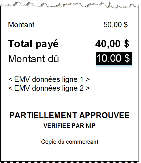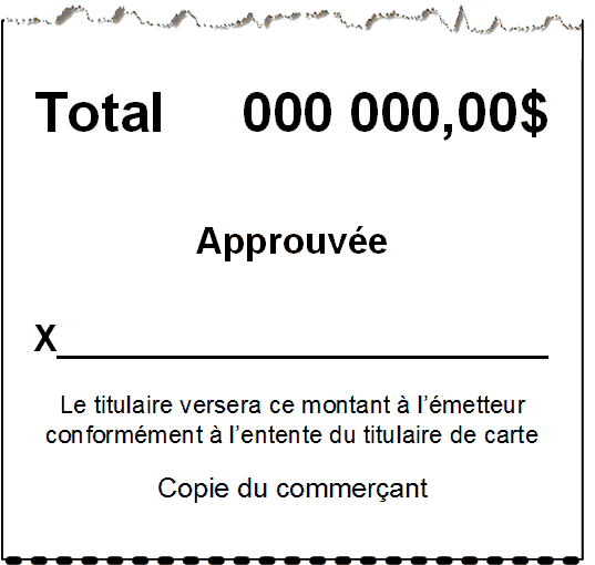 La copie du reçu du commerçant s’imprime après celle du client. Conservez toujours la copie du commerçant pour vos dossiers, mais veuillez noter que :