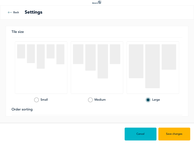 - In the Settings screen, in the Tile size section, tap the option that best represents the size and quantity of tiles you would like to see on the kitchen display following the guidelines below: