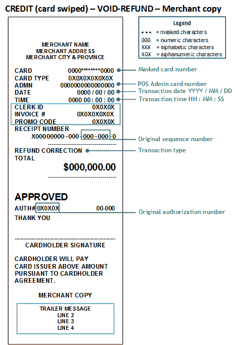 Here are the common messsages that may be printed on the receipt when a transaction is declined or not completed.