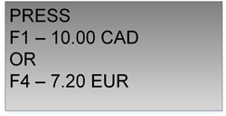 When a foreign card is entered on the PINpad (or on the terminal), the currency information screen appears: