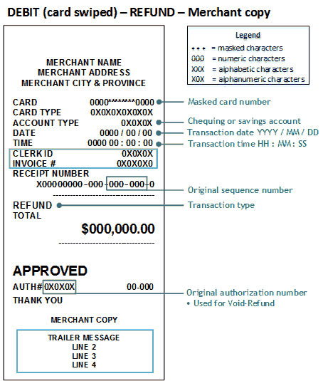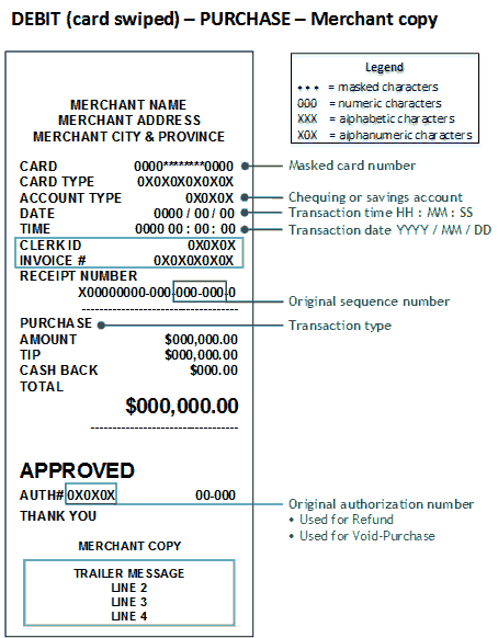 Here are the common messsages that may be printed on the receipt when a transaction is declined or not completed.