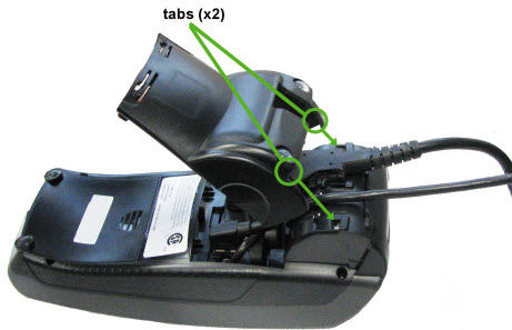 g. Position the PINpad cable so that it sits securely in the middle groove at the top of the terminal.