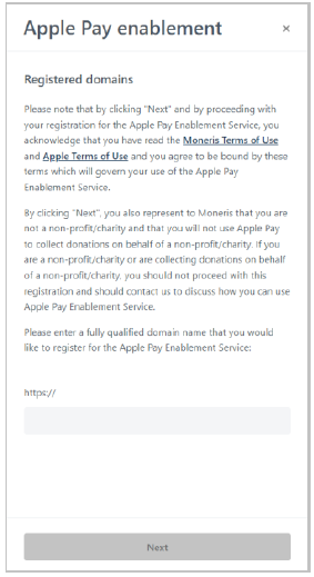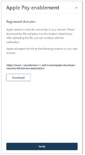 When the refreshed "Apple Pay enablement" window (shown below) lists your domain(s), do one of the following: