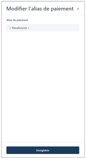 Lorsque la fenêtre « Modifier l'alias de paiement » (illustrée ci-dessous) s’affiche, suivez les étapes suivantes :