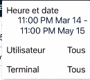 c. Appuyez sur l’icône des options additionnelles ⋮ pour filtrer les totaux des transactions par heure et date, par utilisateur et par terminal (iPhone), le cas échéant.