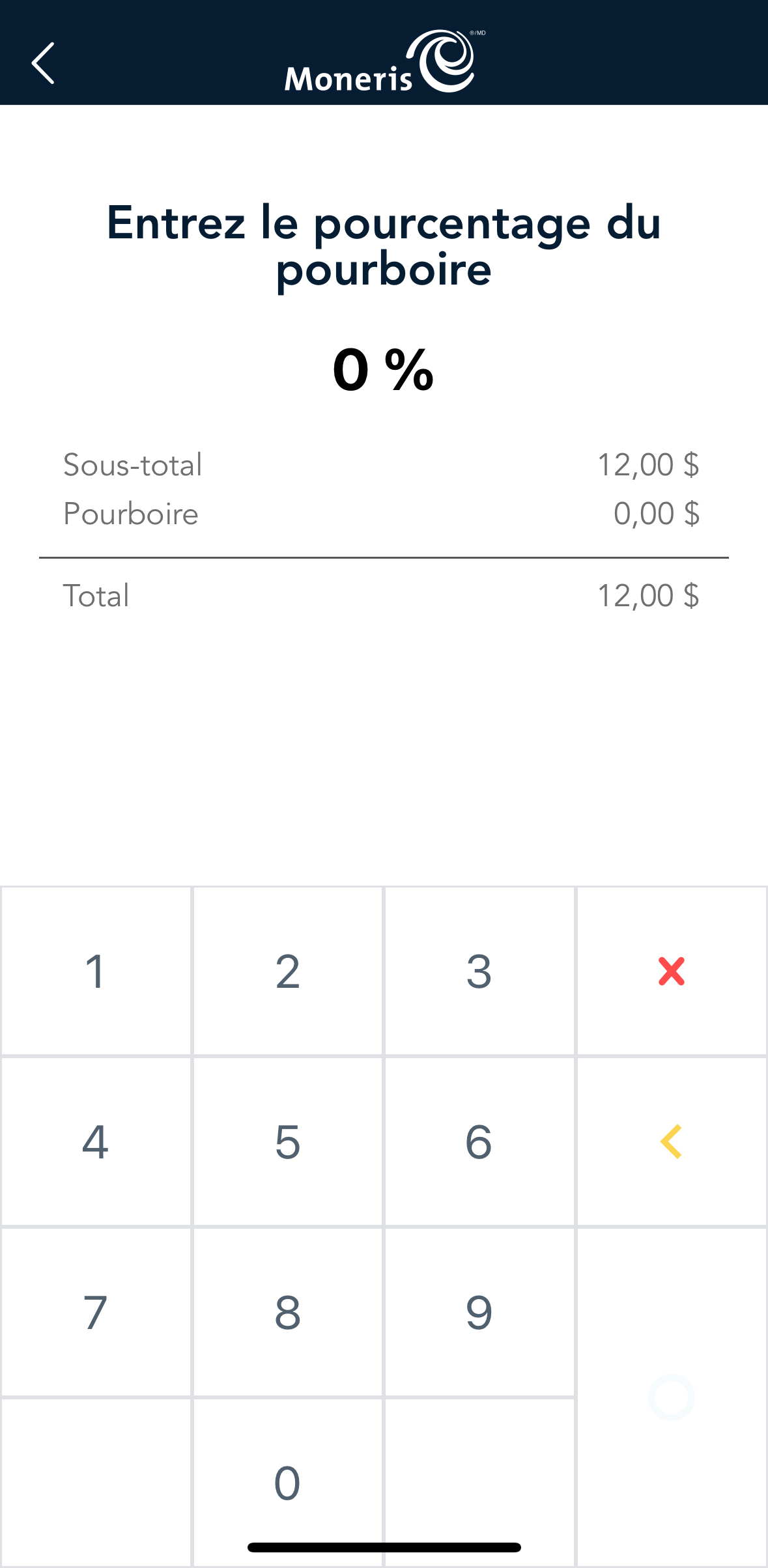 Lorsque le montant de l’achat est entré, le client se voit proposer des options de pourboires sur l’iPhone.