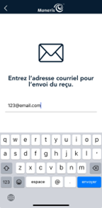 - Lorsque l’option Courriel est sélectionnée, l’invite « Entrez l’adresse courriel pour l’envoi du reçu. » apparaît.